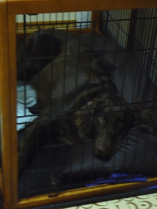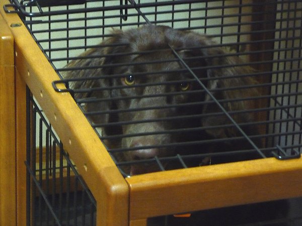 小型・中型犬用のサークルで頭をつっかえてみてます(^^;)
