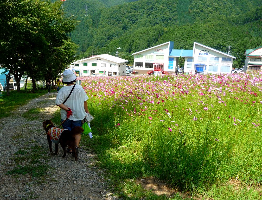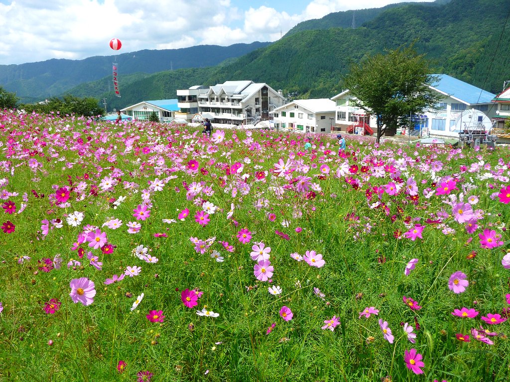 丁度近くのほおのき平スキー場で飛騨にゅうかわコスモスまつりをしていてコスモスが見ごろだってんでそちらへも。