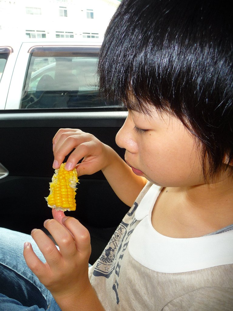 この後下でみたらし団子(姉ちゃんはプラス五平餅とラムネ)ととうもろこしを買ってお昼ごはん、たりるのかぁ~?