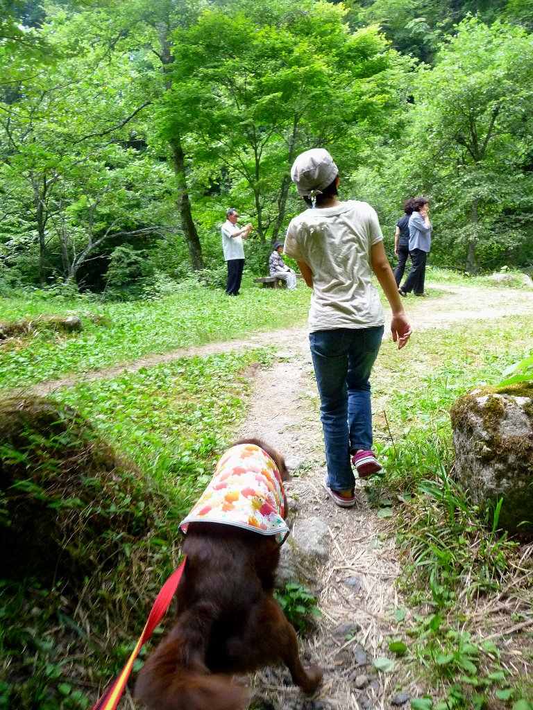 車を止めた場所からはすぐでした、相変わらず森大好き森ガールのカヤはテンション高く、この写真のあと↓事件は起こった(--;)