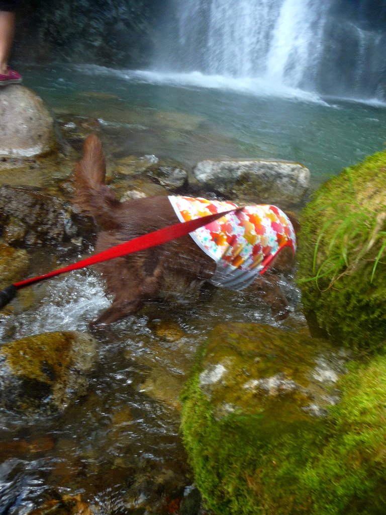 んでチワワちゃんのほうに行かないようにと気をとられ足元を確認してなかったchababa、それと同時にここに入り込んだ瞬間に滝が見えカヤの興奮もMAX、で、おわかりですね(--;)