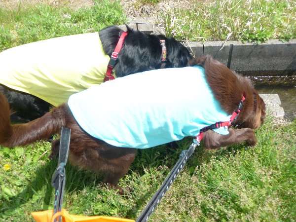 そうそうこの間リリィちゃんちにお邪魔した日、本来小矢部のドックランへ行く予定にしてたんだけどじつはリリィちゃんが先発隊に行って帰ったあと、そう我家と合流してリリィ家で遊んでいた頃、2頭のフラットさんが来てたんですって?!