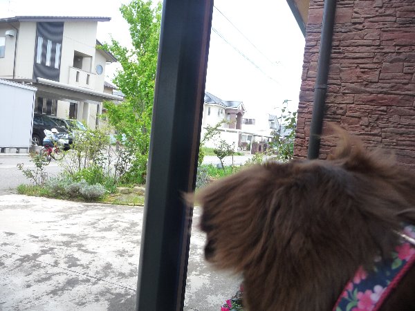 お向かいのミミちゃんがお散歩から戻ったのでした