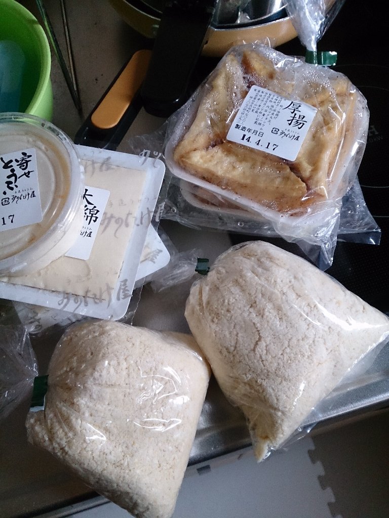 ポイントがたまっていたので寄せ豆腐をひとついただいて、おからは2袋までサービスなの♪