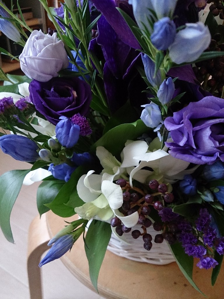 四十九日(七七日忌)のお供え花にとどいたお花です。↓