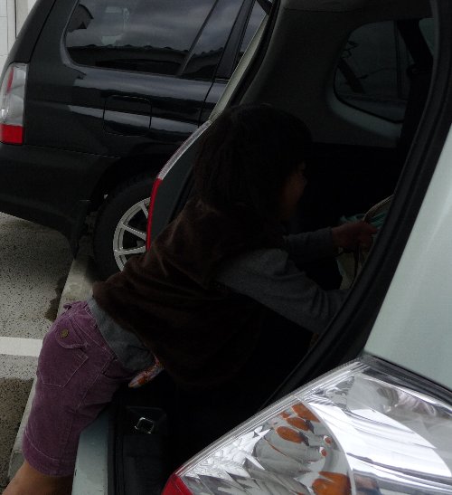 姉ちゃんゲームで遊びたそうだったけど、役員会前に姉ちゃんが買いたがってるおしゃべりベッカム君を買いに言く予定にしてたんでお出かけです。