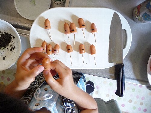 お顔に使う黒ゴマが無くってすりゴマで頑張ってみたけどあえなく断念(>▲<)