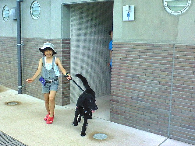 その後、とりあえず合羽を着て凜ちゃんはお散歩、カヤ許せ!