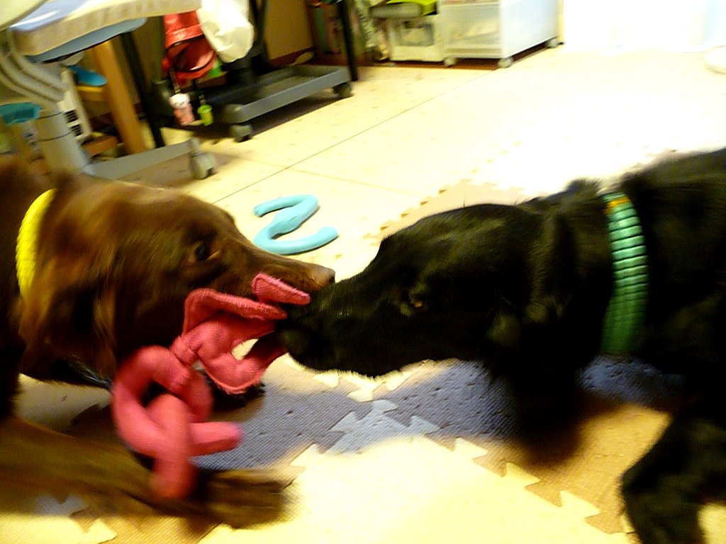 あたしとした事がカヤの大好きな、持ち運びに超便利な、引っ張りっこにもってこいの、爆裂シスターズが引っ張りっこしてもとっても丈夫な・・・(´へ`;