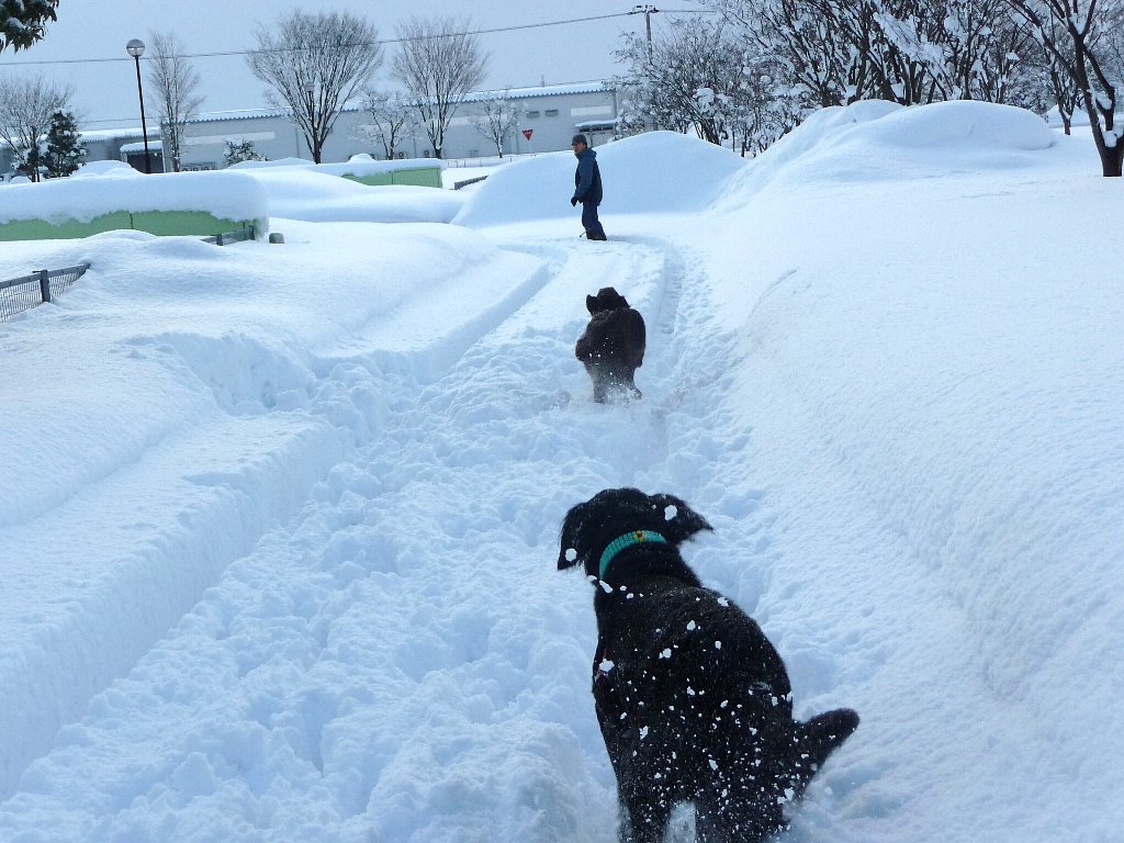昨日ずぅっと降り続いた雪、積もりました、が、富山県、富山市が沢山降って高岡とか小矢部とかは全然降ってないらしい。