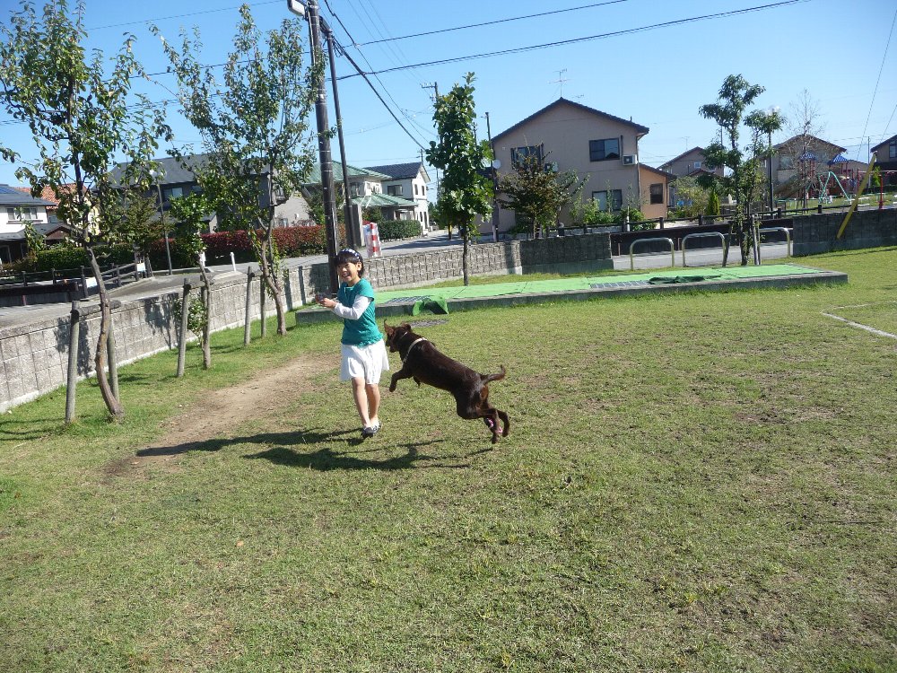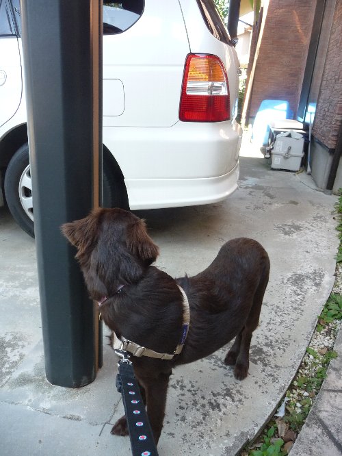 カヤ車に行きたがって一瞬動かず。