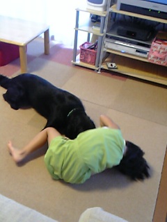 前は↓凛がこんなことしたら噛んだぁ~ってべそかいてた姉ちゃんが、平気のへの河童で、しかも耳引っ張ってるし、(^^;)あんたが悪さしてんだ。
