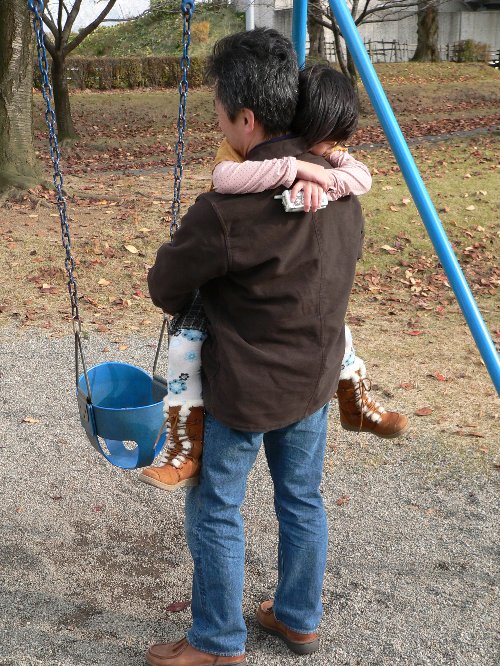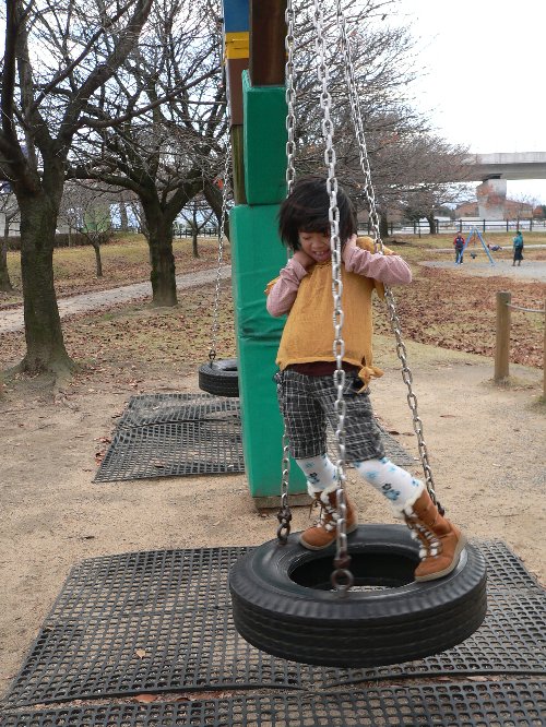 と言うのも、↓のブランコ、多分赤ちゃん用、これに乗っちゃってはまって出られなくなったらしいのです(→O←)ゞ アチャー