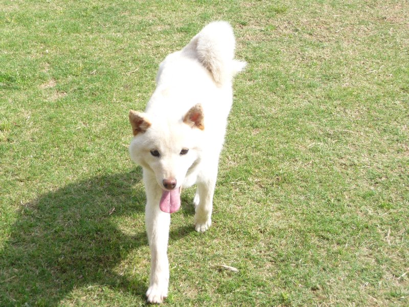 先客の白い柴(?)ちゃん、黄柴と言うより白かったです、柴じゃないのかな?