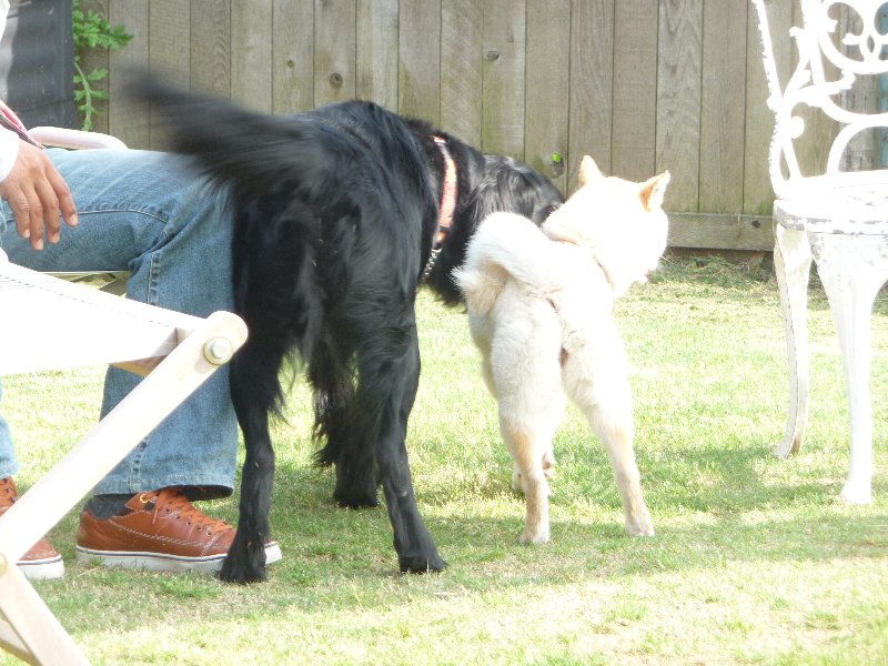 柴君はランがはじめてのよう、凜がご挨拶に行ったら唸ってました(^^;)凜ちゃん、もうちょっとソフトにゆっくり行こうよぉ。