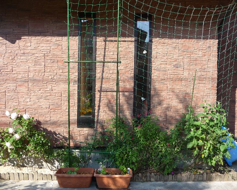 ゴーヤの横手には朝顔も、どうなるかなぁ~。
