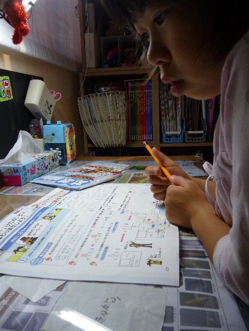 んで、今日は給食終わって掃除して帰ってくる姉ちゃん、もう6月だって言うのに5月のチャレンジが全然終わってなくって昨日注意してたわけなんだけど、昨日の話では今日必ず終わらせるって。