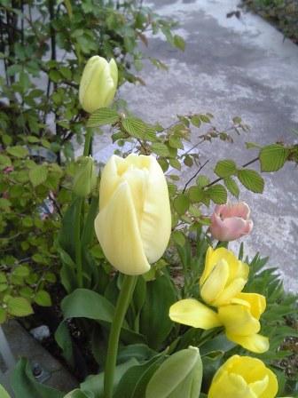 おうちについたら、まだ咲いてなかった一番のっぽなチューリップが咲いてたんで、写真写真と思って姉ちゃんに凛を任せてchababaはチューリップのところへ。