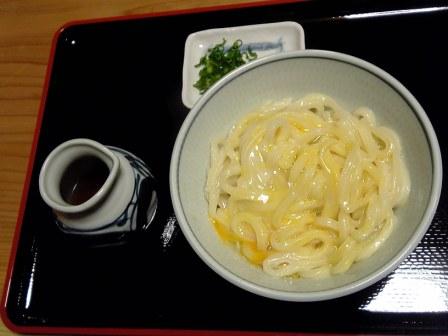 なので凛パパが梅おろしのぶっかけうどんのあったかいやつ、姉ちゃんが生醤油をかけて食べる醤油うどん、chababaは釜揚げうどんに卵の絡んだやつをオーダー。