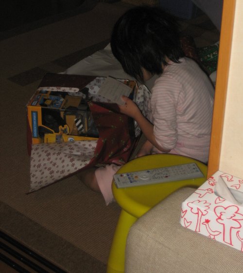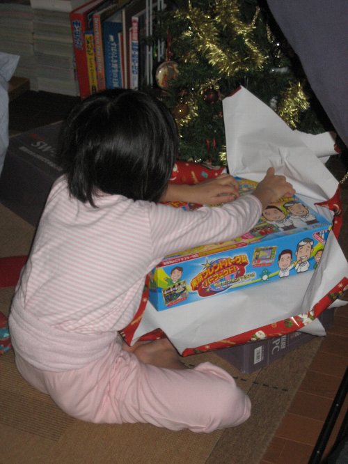 朝寝ぼけながら姉ちゃん、今日パパお仕事だよね、ママお弁当作らんなんしおっきるんだよねとお布団の中でごそごそ、が次の瞬間、あっ!サンタさん!!と飛び起きた。