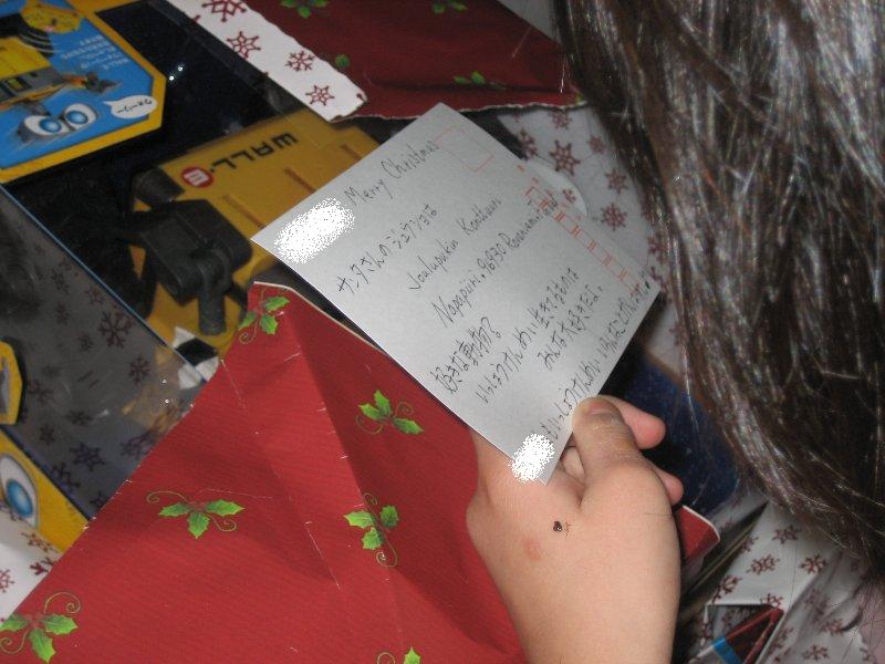 お願いサンタさん(サンタさんのタベストリーに靴下のついたもの)にサンタさんへのお手紙を書いていた姉ちゃん、その中に二つほど質問を書いていたのですが・・・