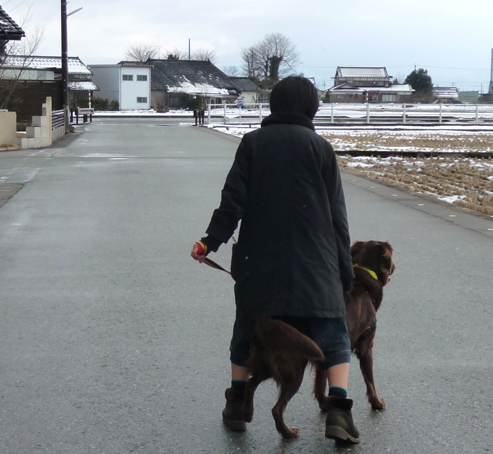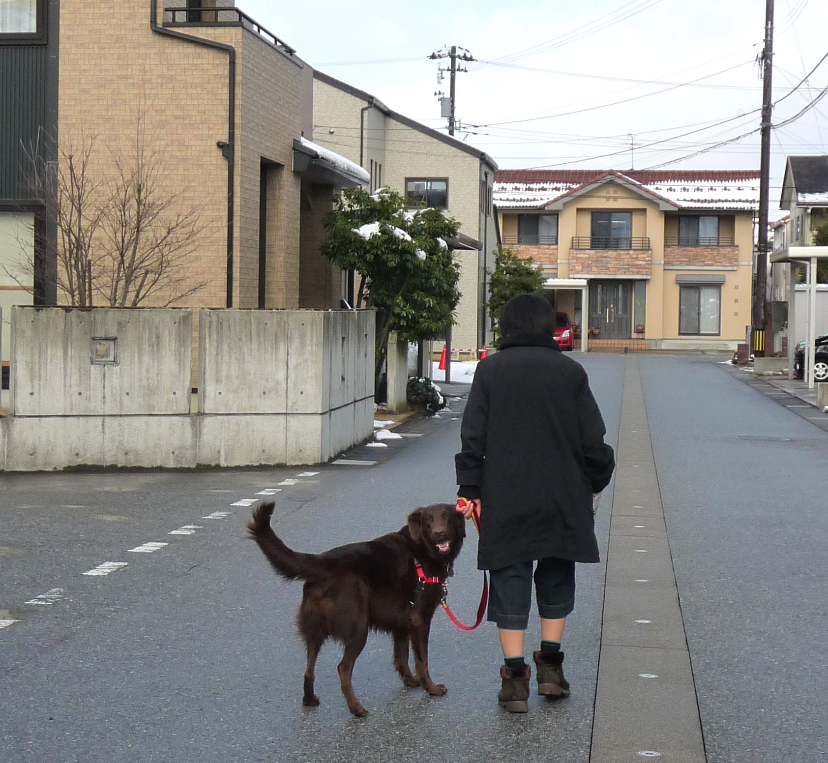 出てきてから大島絵本館横の公園でお散歩でもと思ったけど雪ずっと降ってって、結局おうちのそばに来ても雪やまなかったんで雪の中夕散。