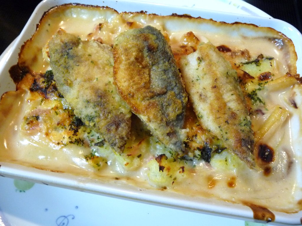 夜はアジをかりかりに焼いたののっけてグラタン♪