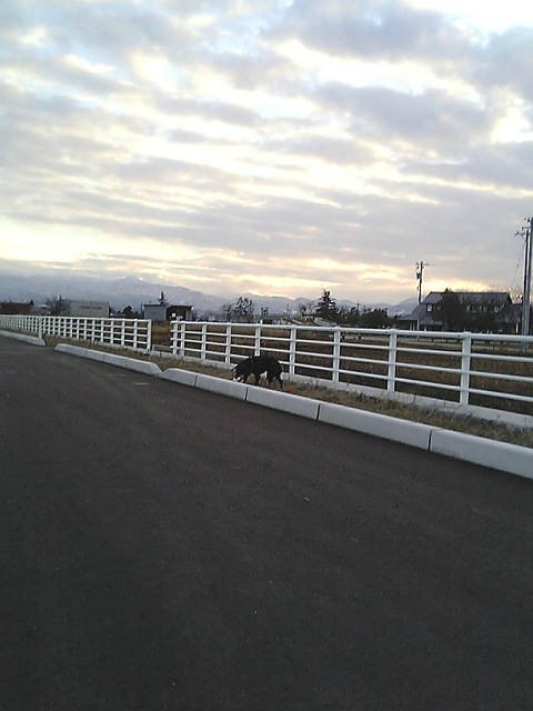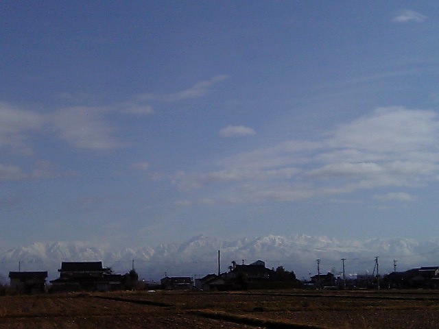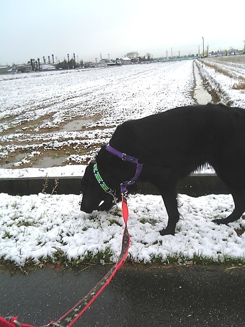 今朝方少しだけ降った雪が、空き地や田んぼにうっすらとケーキ用のシュガーを振りかけたように残っていました。