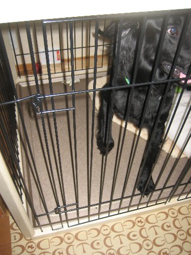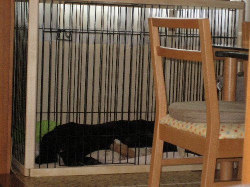 おうちの中に入ってからはしばらく遊んでたんだけど、ハウスメーカーさんにお風呂の換気扇の修理と瓦の割れ見てもらうのお願いしてた件でいらっしゃったんで凜はサークル。