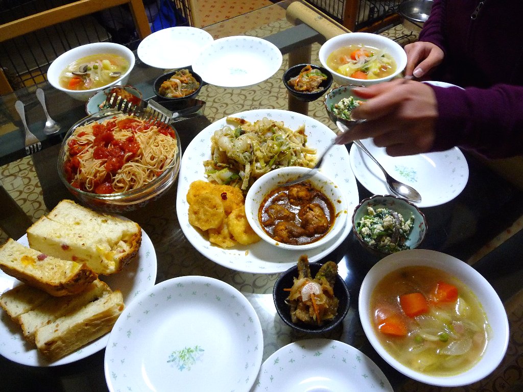 買ってきた食パンをどうしてもその日のうちにちょっとは食べたかったんで食パンに合わせてスープにして、それでも食パンは3人で2枚だけ焼いたしとカッペリーニを作ったんだけど凜パパに寒いので冷たいパスタは・・・って(^へ^;)確かにね。