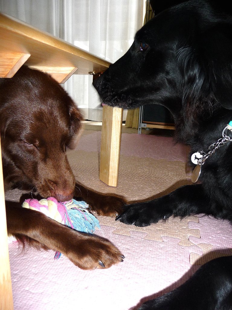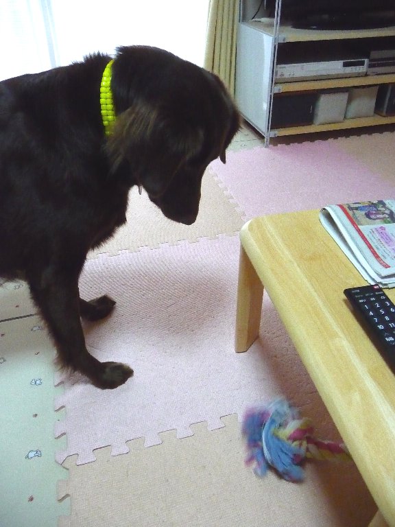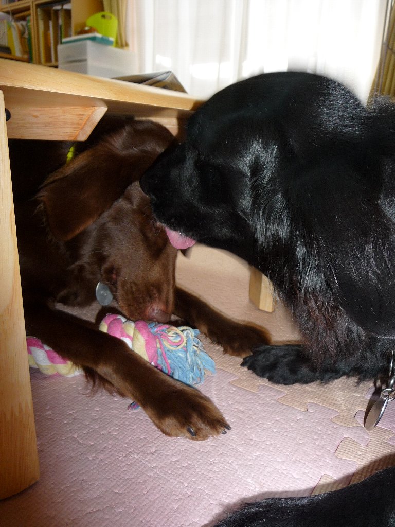 ねぇねぇ、そんなとこもってったら引張りっこ出来ないでしよ、出てくるでしよぉ~!