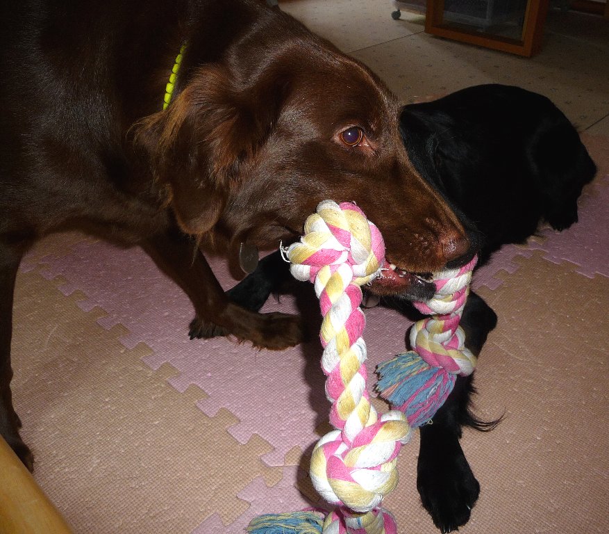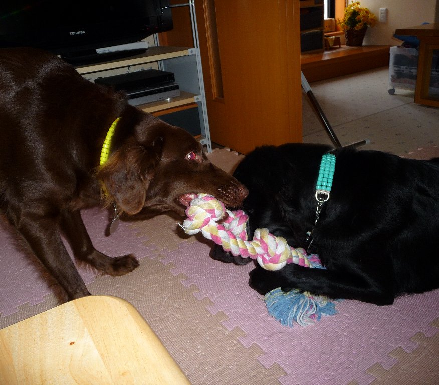 激しくないように見えるけどフラッシュたかなかったらぶれぶれでカヤは唸りまくっての引っ張りっこ(^。^;)