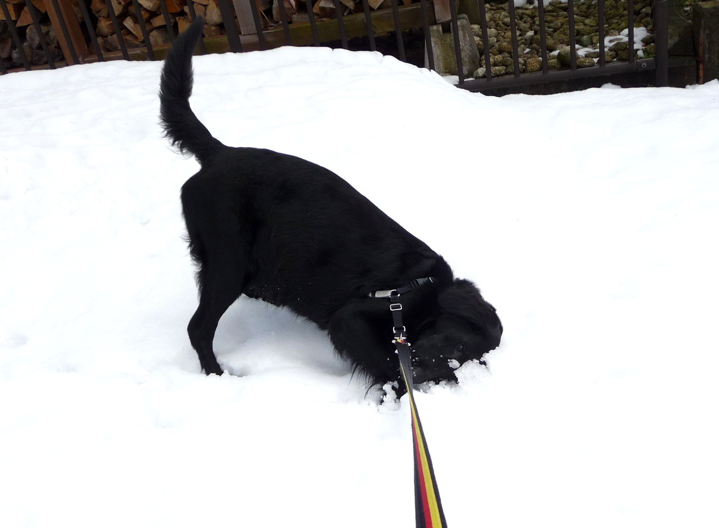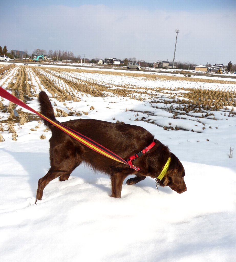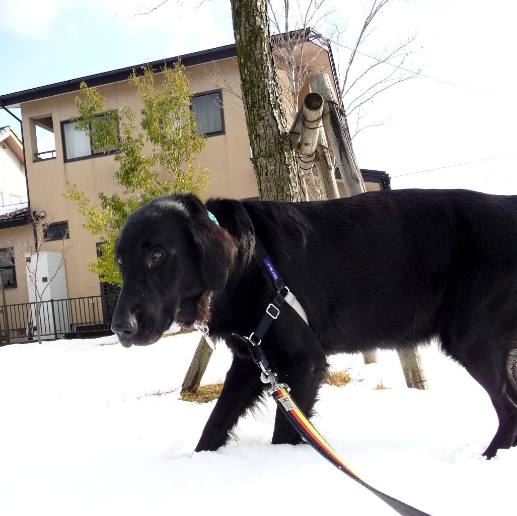 昨日の雨と今日のお天気で無くなりつつある雪を見つけてはスリスリを堪能、ってそこ日陰だし(--)