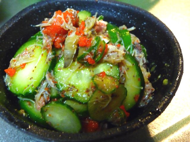 本当はこれを白ごはんにのっけて食べるのが美味しいのだけど今日は炊き込みご飯にしたからきゅうりと合えてみたよ。