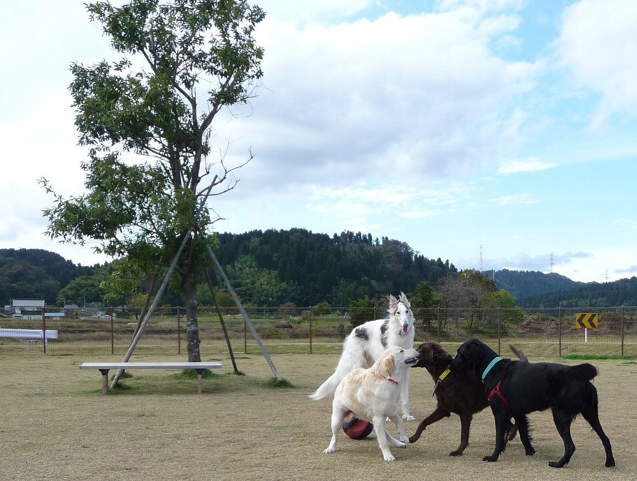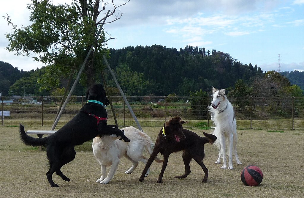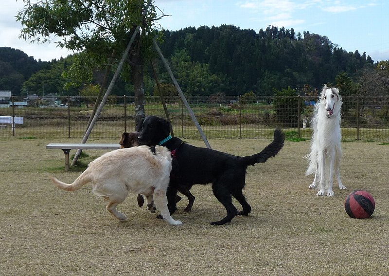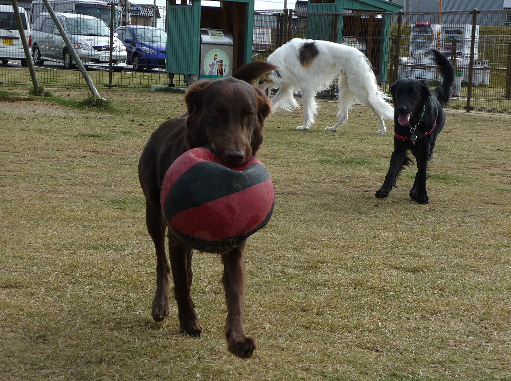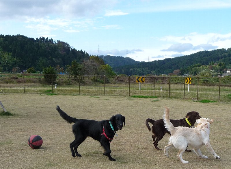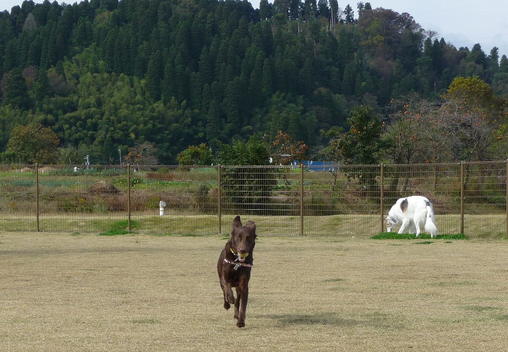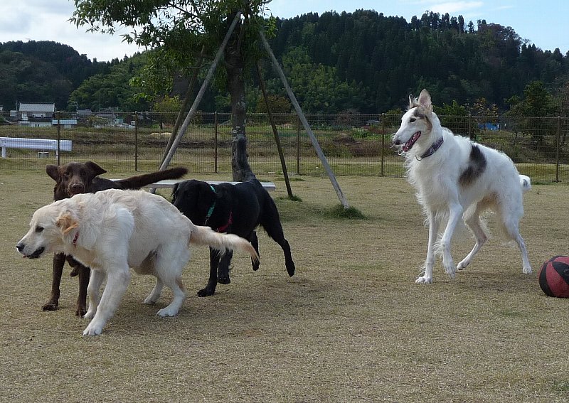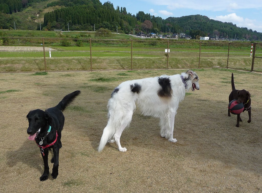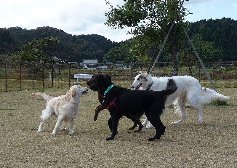 んで午後からまたランへ放牧、小型犬のところは結構立ち代り賑わってたんだけど大型犬とこはずぅっと貸切、空は曇ってきてさぶさはます