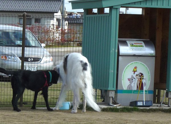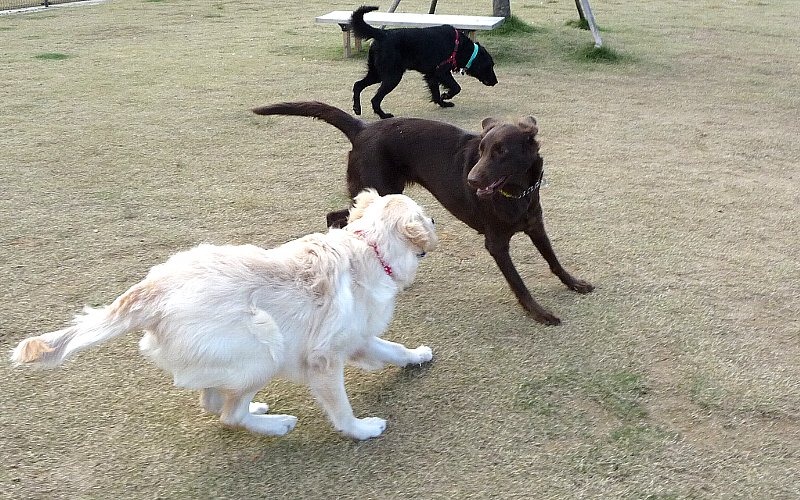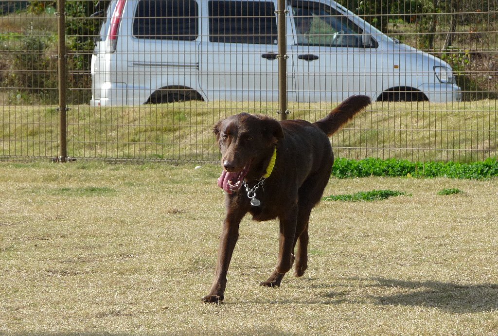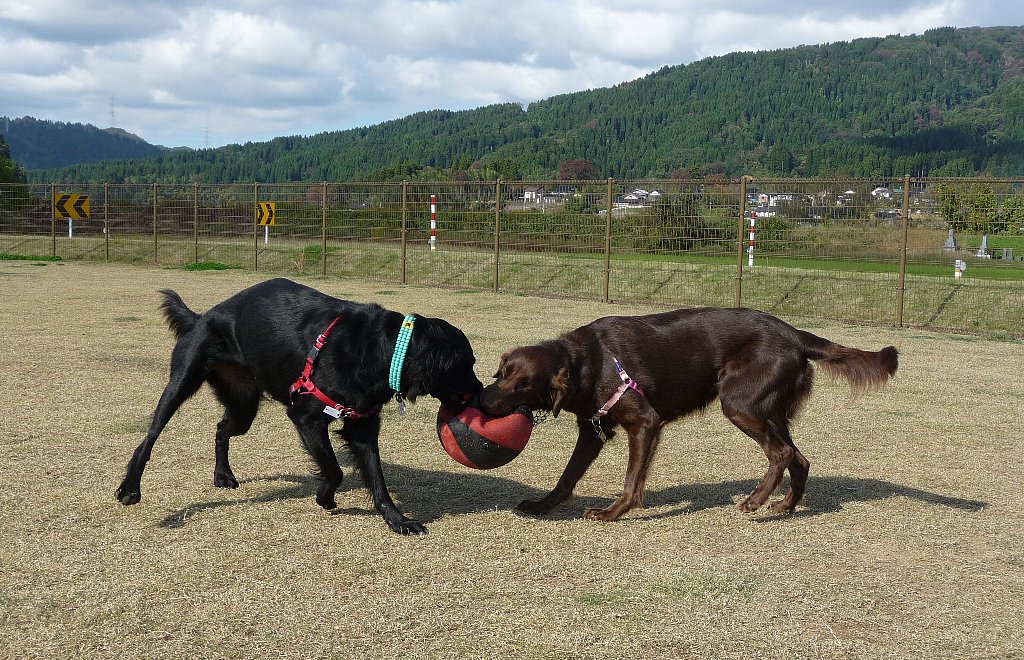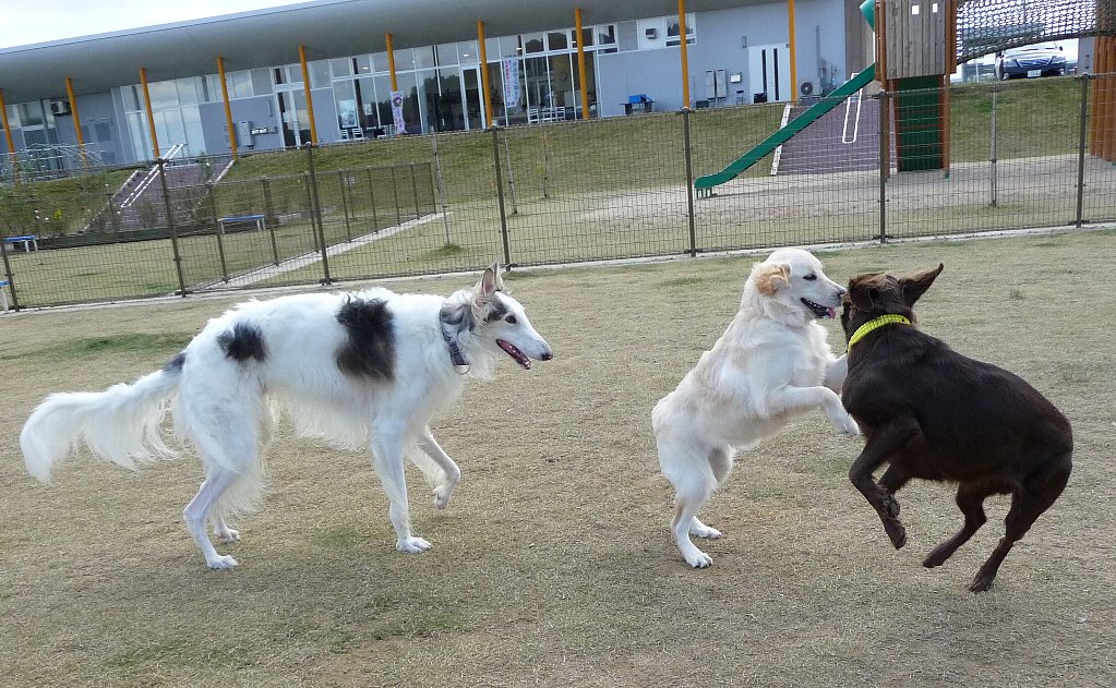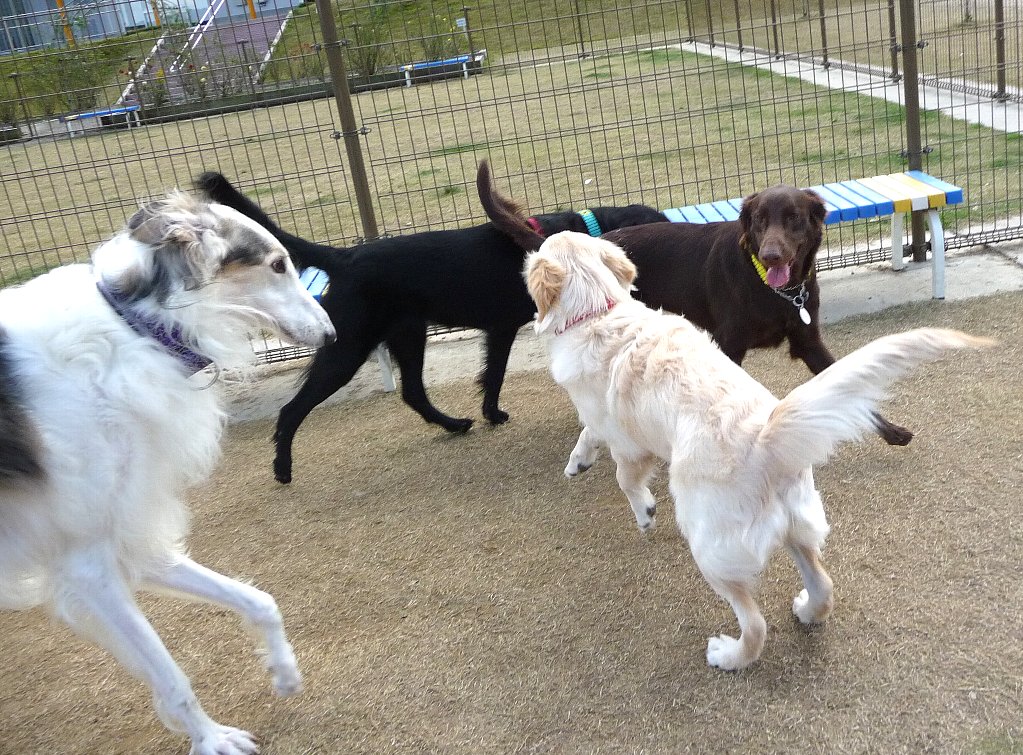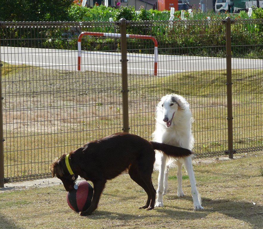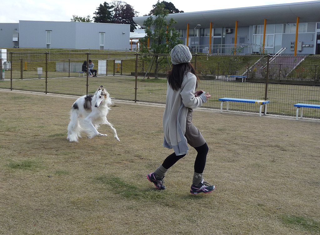 んで午後からまたランへ放牧、小型犬のところは結構立ち代り賑わってたんだけど大型犬とこはずぅっと貸切、空は曇ってきてさぶさはます