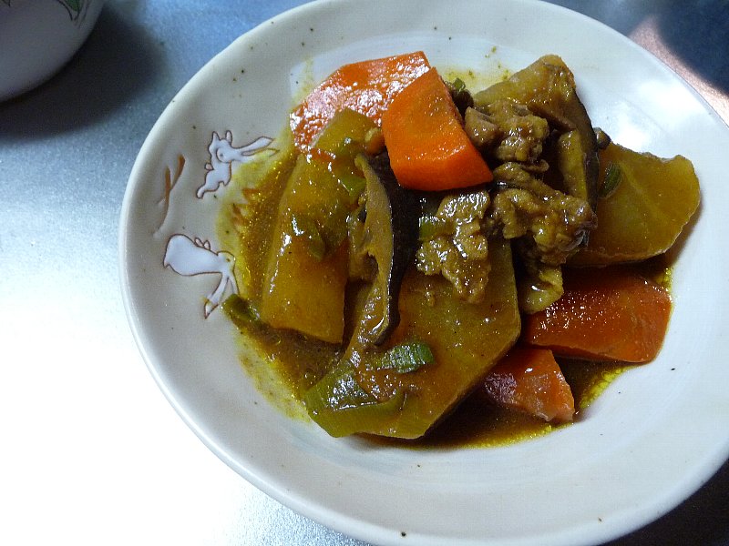 この日の夜、道の駅で美味しそうな大根買ってきたので(他にもキャベツやら柚子やら春菊やら卵やらぁ~♪)本に載ってたカレー煮ってのを作ってみた。