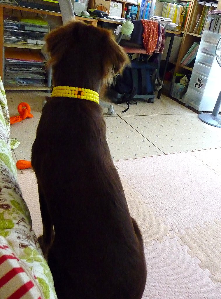 そうなんです、カラーなしのときも皮に石の着いたカラーもルパインのカラーも軽すぎてなんか変な感じがしたらしく何度も何度もぶるぶるしてたカヤちゃん、ビーズカラーをつけた途端にぶるぶるしなくなっちゃいました(^m^;)