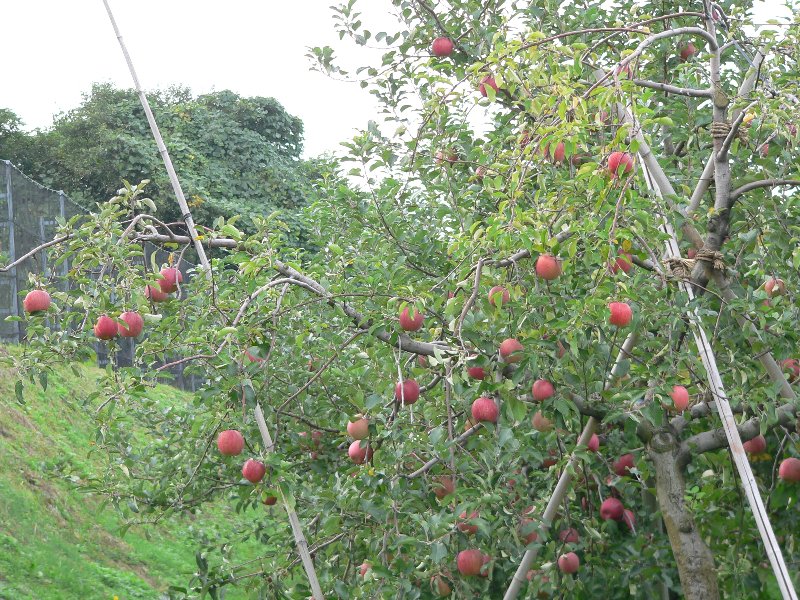 でもこの赤いりんご、まだまだ若い木で葉っぱが少ないために赤くなってるんですって。