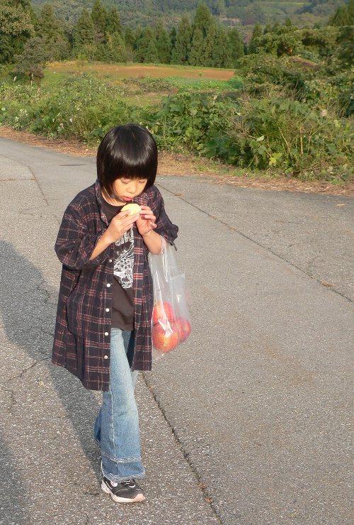 果樹園の中で食べるのはいくら食べてもいいんだけど、おっきくてジューシーなりんご、1ヶ食べたらもうおなかいっぱいです。
