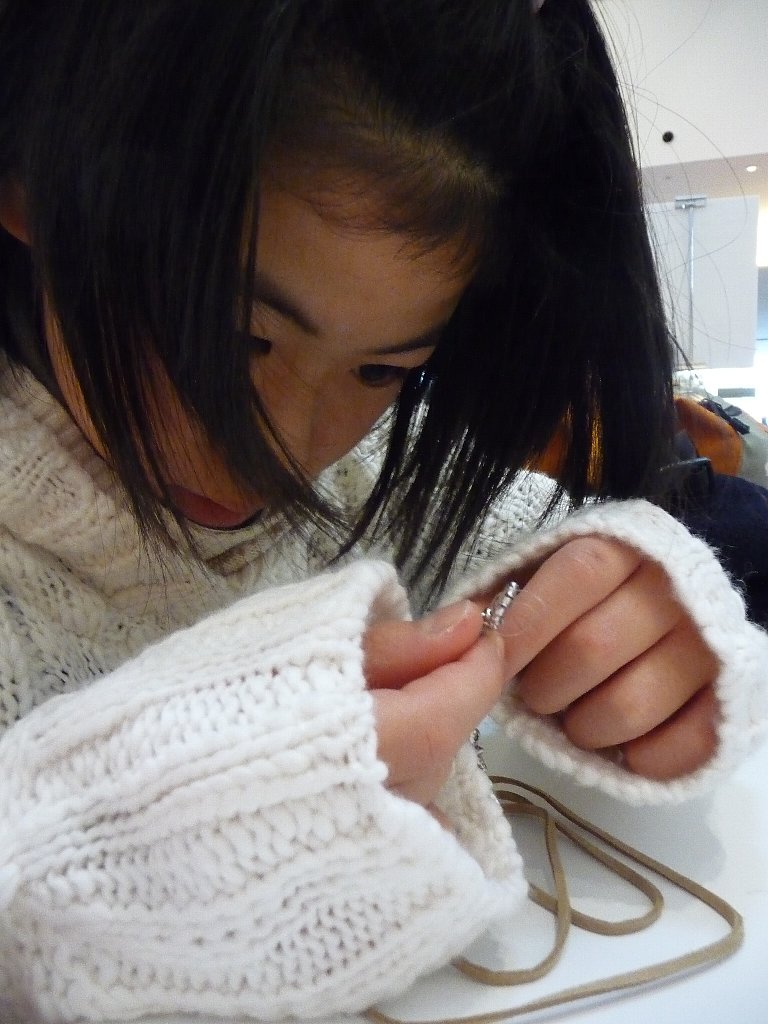リリアン編で創るビーズのくるくるアクセサリー作りです(^^)b