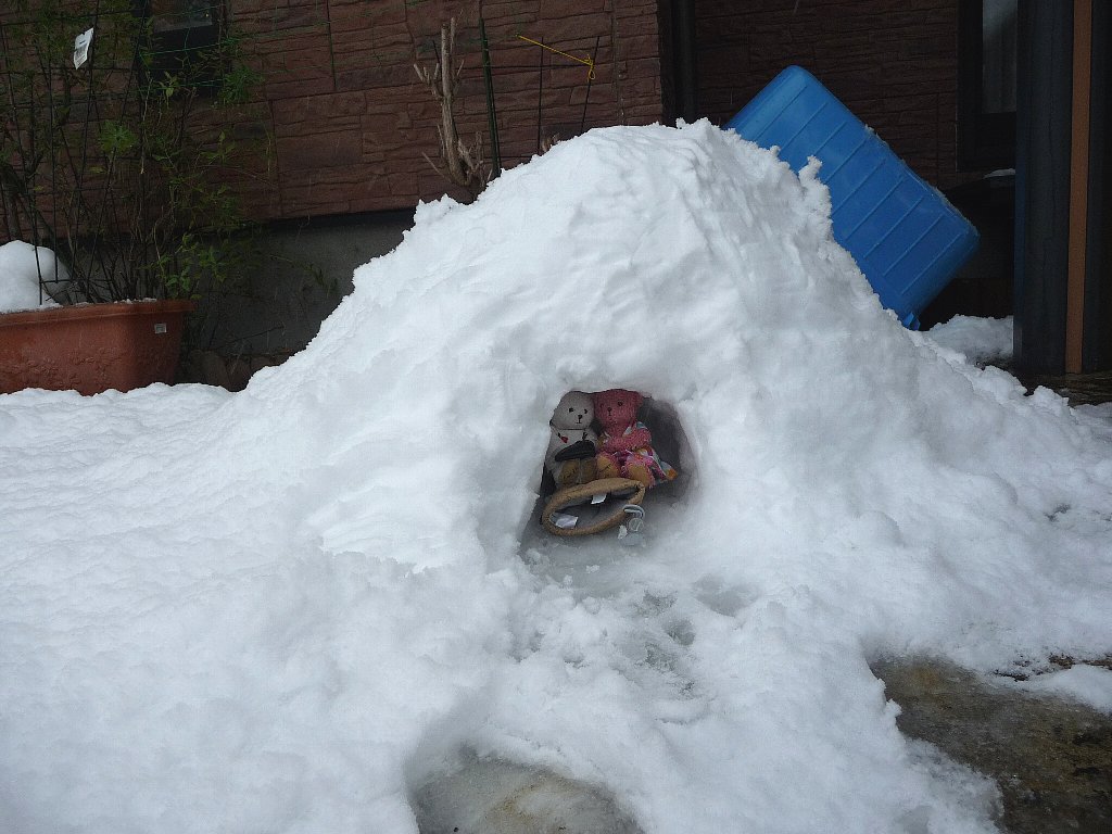 夜散に出たらずっと降ってた雪、朝よりぐんと増えてました。