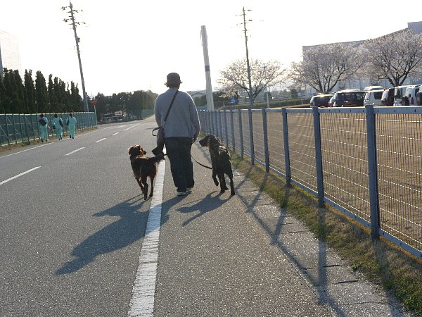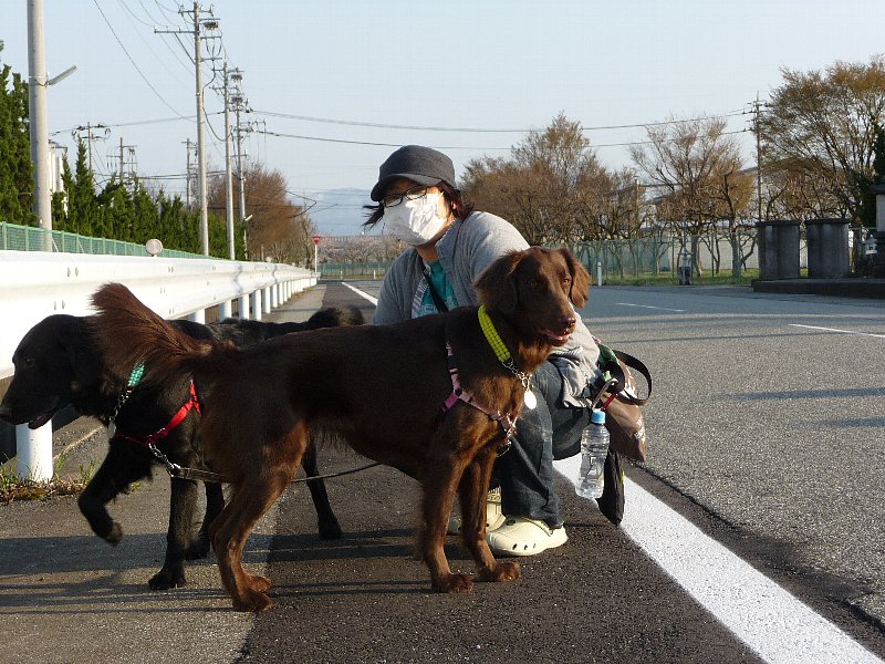 道がわかんないとこに人を見かけたから慌てて止まった?でもでも最近遊んで撫でてかまって吠えの激しいお二人さん(けして威嚇でも怒っているわけでもないのですが --;)、こちらに人が近づいて確実にこっちを目指してらっしゃるのを見て・・・恥ずかしや(--メ)