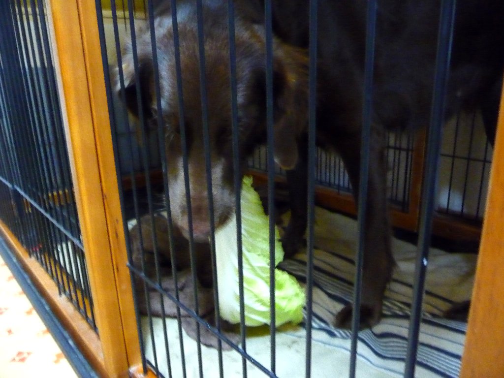 そんな2ワンにご褒美、昨日美味しそうなおっきな白菜を買って今日の夕ごはんにそれを使うんで洗っておっきな1枚を半分に切って2ワンにも。