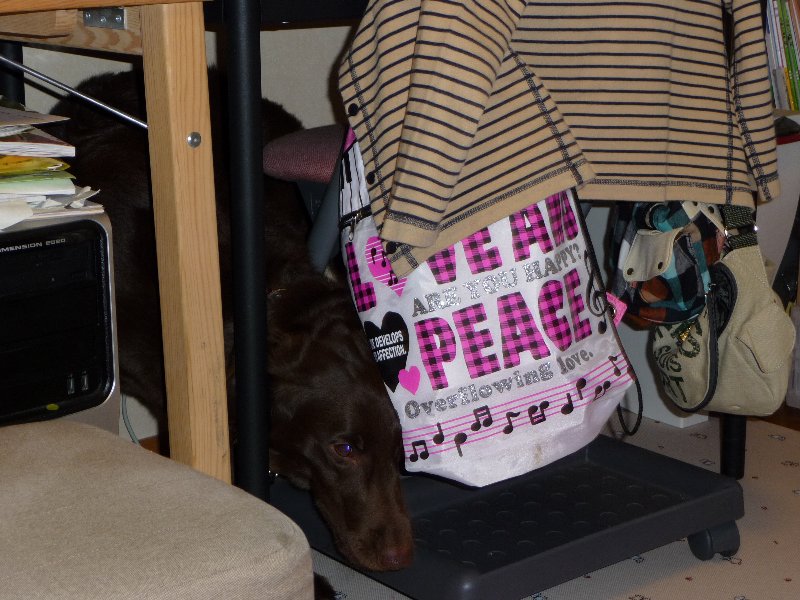 ほんと怖がりさん、横のコード齧っちゃだめだからね!