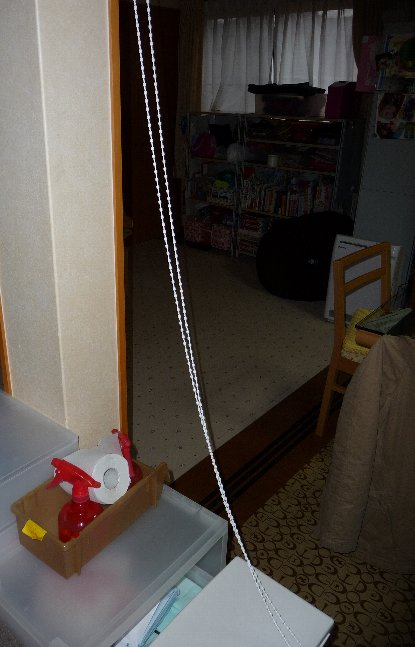 どうやら通りすがりにロールカーテンのヒモに引っ掛かってシャララァンと動いたのが怖かったらしい(^^;)