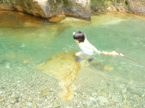 でもこの水着、保温以外にも虫刺されや枝なんかの擦り傷の防止にもなるし水遊びにはよろしくってよ(^。^)
