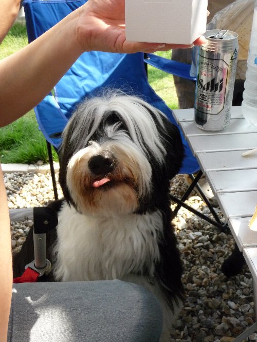 アーコ姉さんがワンズに美味しいのをお土産に♪