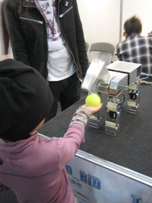 色んな大学や会社から出展されてて、ロボットを作る人になりたい姉ちゃん、どんな学校や会社に進めばロボットを作り(開発)に携われるのか・・・ってそんなのチェックしてるわけないよね(^。^;)