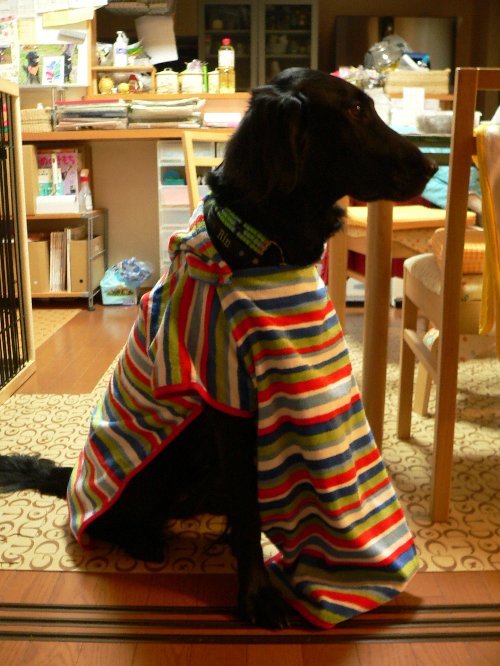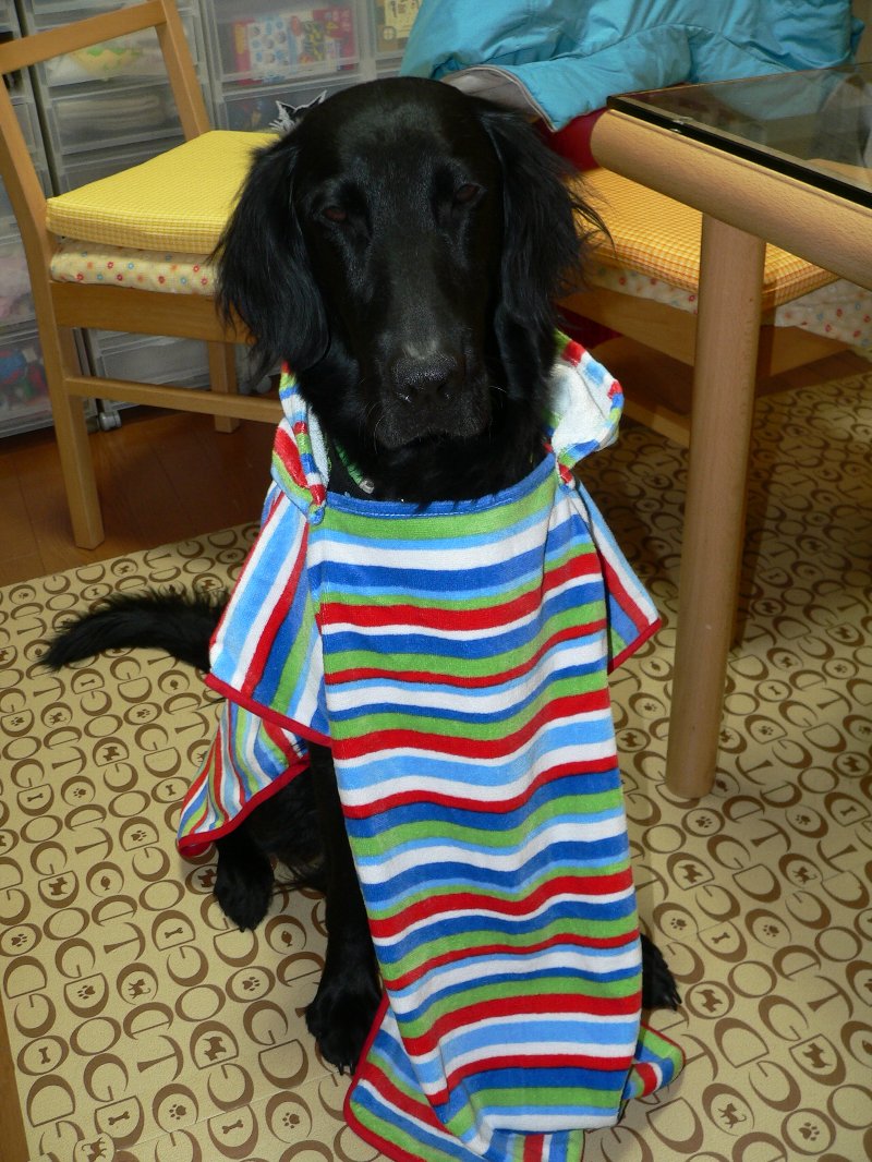 そうそう昨日のココちゃんとおそろのバスタオル、ココパパさんに指摘され、どうやら着せ方がおかしい?!
